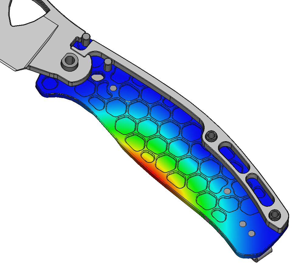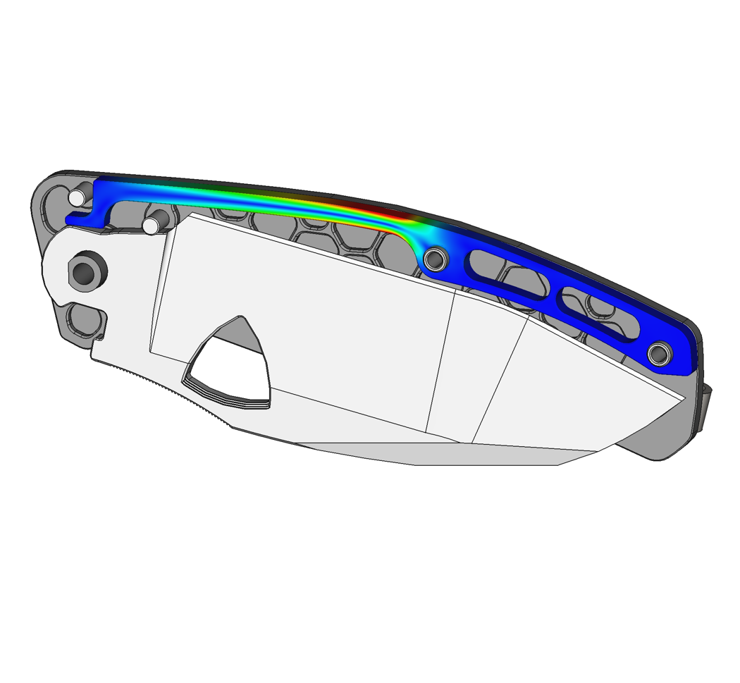 Erstmalig wurde ein Klappmesser kompromisslos mit modernen Berechnungsmethoden aus dem Ingenieursbereich entwickelt. Mit der Finite-Elemente-Methode (FEM) wurde der Federmechanismus bis ins letzte Detail ausgelegt. Als Ergebnis begeistert das Multiverse mit einem herausragenden Öffnungserlebnis.